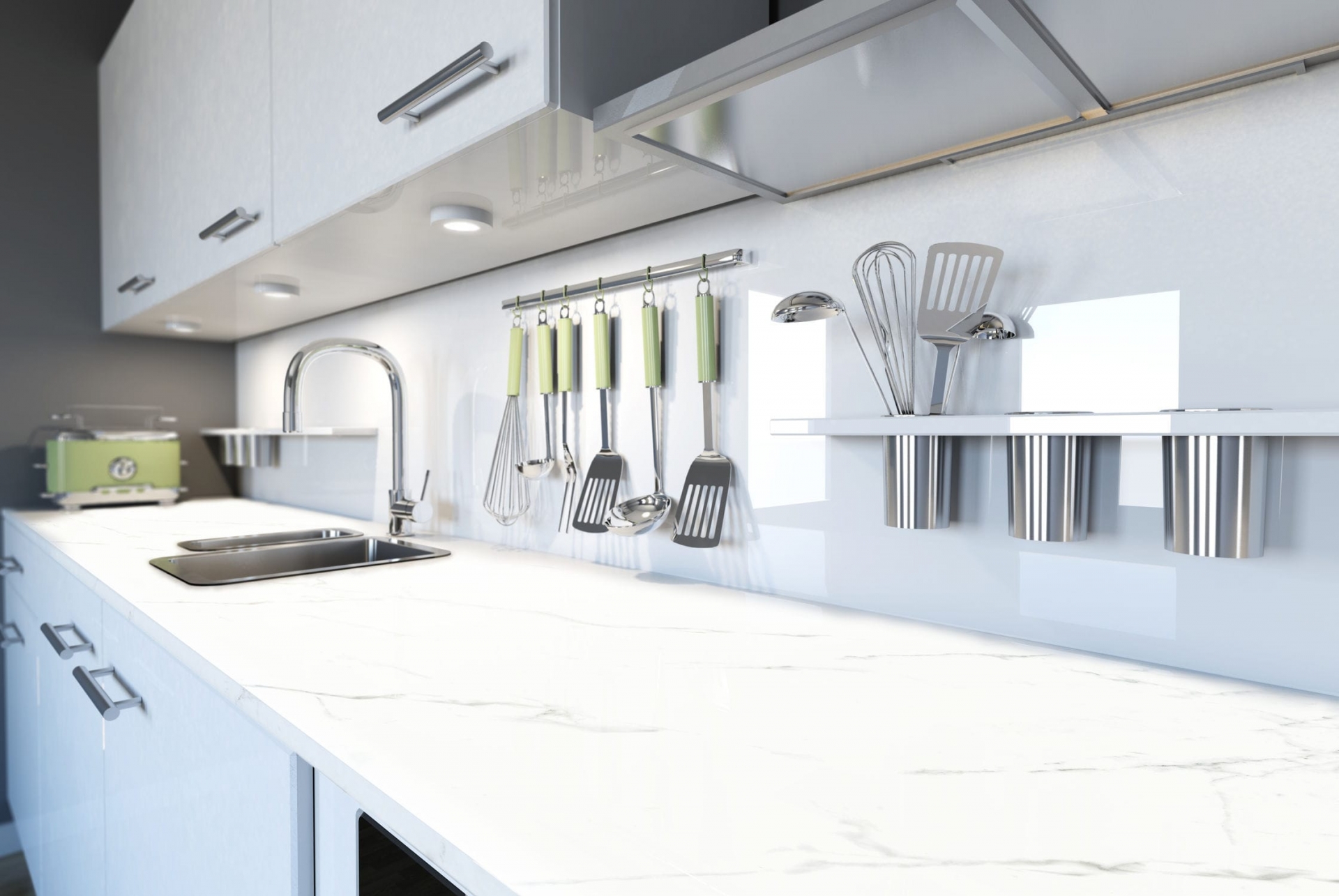 Dektin Kairos de veteado natural y luminoso, con colores blancos y pálidos grises fríos; y hace referencia al mármol estatuario, muy valorado en la arquitectura y el diseño.
