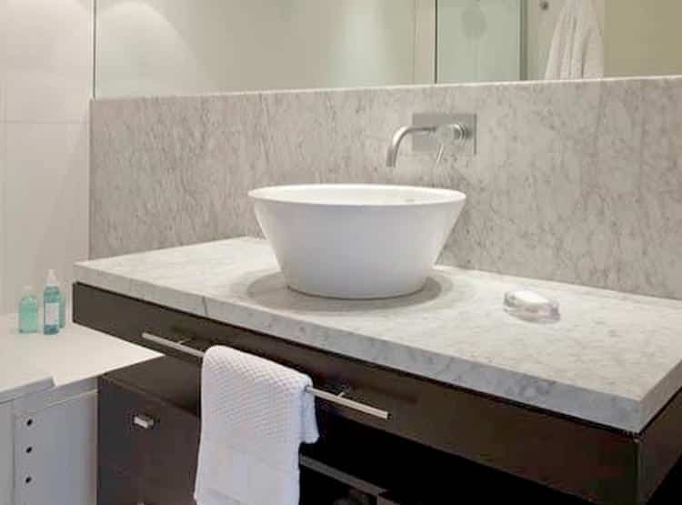 Nota importante: las marmetas (baldosas) de carrara provienen de diferentes bloques con lo cual es esperable que tengan diferencias de tono. Si busca un tono uniforme en carrara es recomendable solicitar un trabajo a medida cortado a partir de un único bloque.