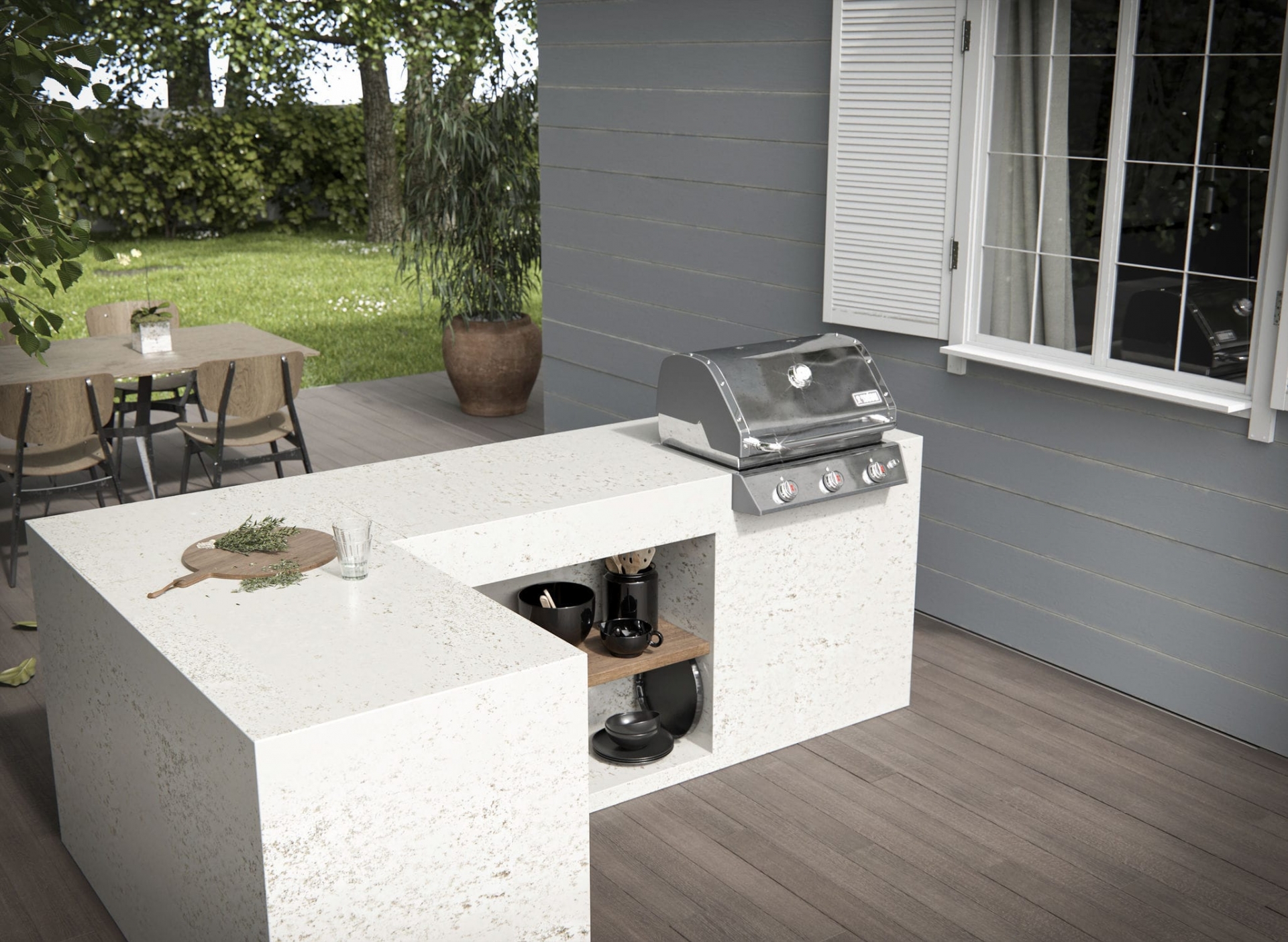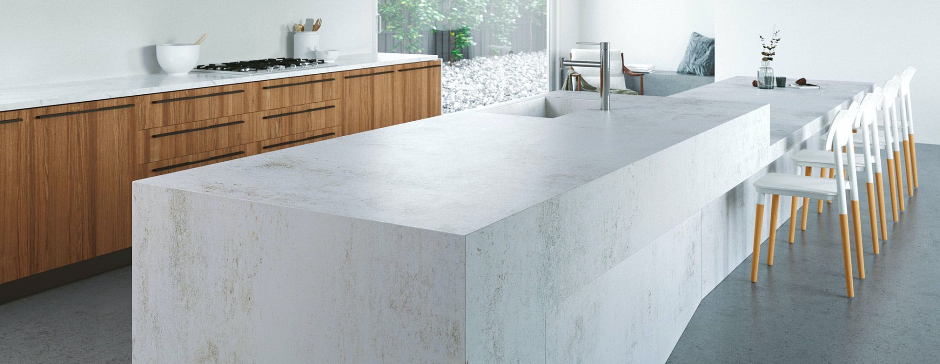 Perteneciente a la serie Industrial, que rinde homenaje a las etapas de envejecimiento de los metales. Dekton Nilium  , inspirado en un metal plateado. La delicada aparición de colores cálidos representa el inicio del proceso de oxidación de un material. Un color minimalista donde se mezclan tonos blancos y grises.