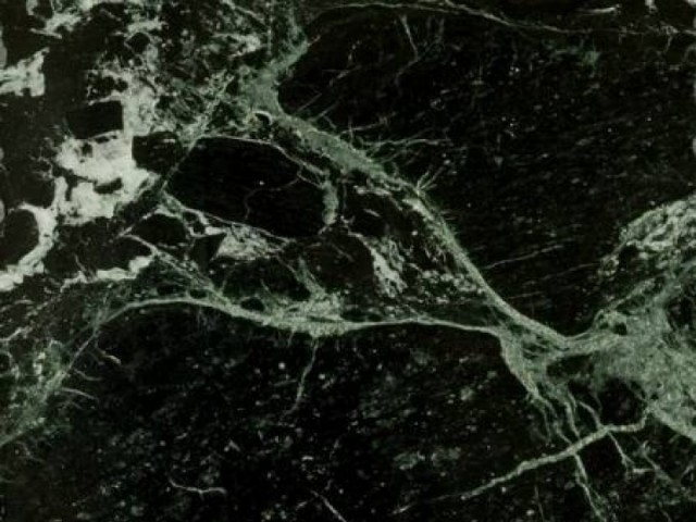 Mármol de la India, verde oscuro con ramificaciones mas claras.