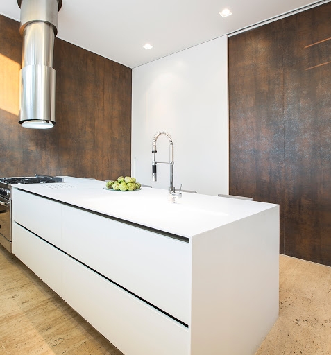 Diseño minimalista y neutro que se distingue por sus delicadas pinceladas de brillo metalizado, sobre un fondo blanco con aguas grises claras, aportando luminosidad a la pieza.